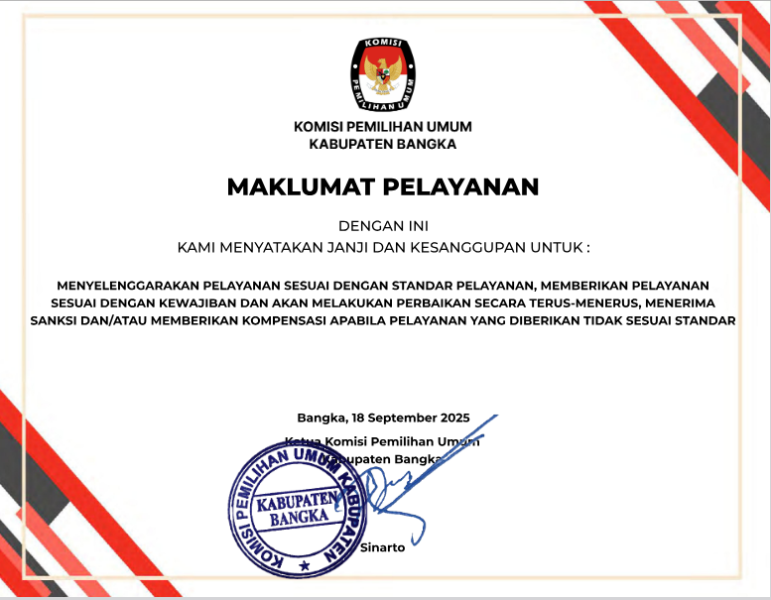 PENGUMUMAN NOMOR 8/02.5-Pu/1901/2025 TENTANG HASIL PENERIMAAN LAPORAN AWAL DANA KAMPANYE DALAM PEMILIHAN BUPATI DAN WAKIL BUPATI BANGKA ULANG TAHUN 2025 DAN PENGUMUMAN NOMOR 9/02.5-Pu/1901/20