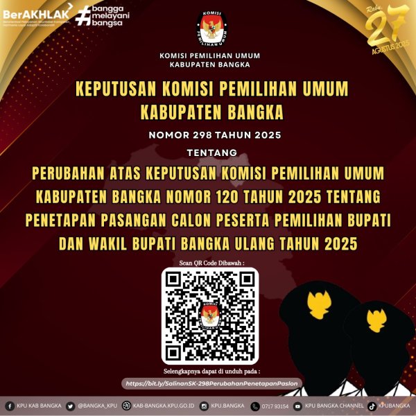 Keputusan KPU Kabupaten Bangka Nomor 298 Tahun 2025