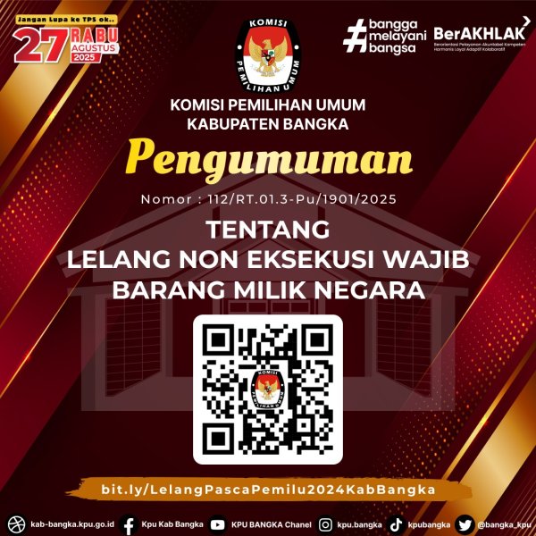 Teman Pemilih... berikut kami sampaikan penguman lelang nomor : 112/RT.01.3-Pu/1901/2025 tentang Penguman Lelang Non Eksekusi Barang Milik Negara https://drive.google.com/file/d/1kmPBgF0ohiVcTvp5N4Z8qrltxAq0tDGx/view?usp=sharing